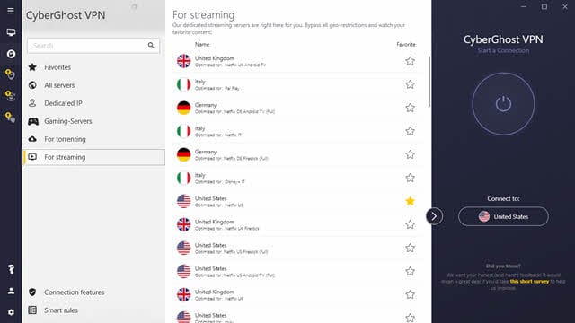 易于使用的一键式连接确保您的连接,多个高速的专用VPN服务器,对于流媒体和下载没有带宽使用限制,没有VPN试用 - 完全无限制VPN,没有会话限制或约束。